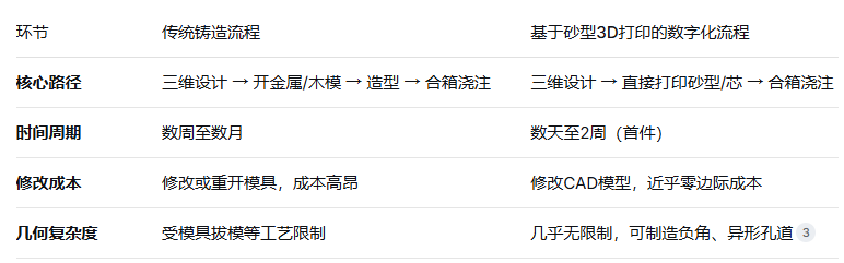 传统铸造与数字化铸造的核心流程对比: