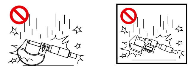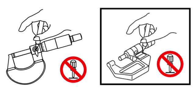 如果用起子等尖锐物在数显千分尺上划刻,会损坏液晶显示屏导致无法读数。也不要自行拆解哦。