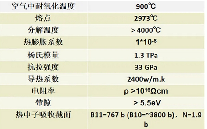 氮化硼纳米管的部分性能参数