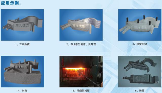 利用SL树脂模样代替木模制作砂型或者砂芯进行实型造型也可用作消失法铸造代替模型,用于不起模,精度高的铸件。